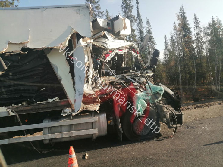 Прошедшей ночью в Мурманской области на трассе «Мурманск – Санкт-Петербург» произошло ДТП. Недалеко от поворота на Магнетиты грузовик столкнулся с экскаватором.