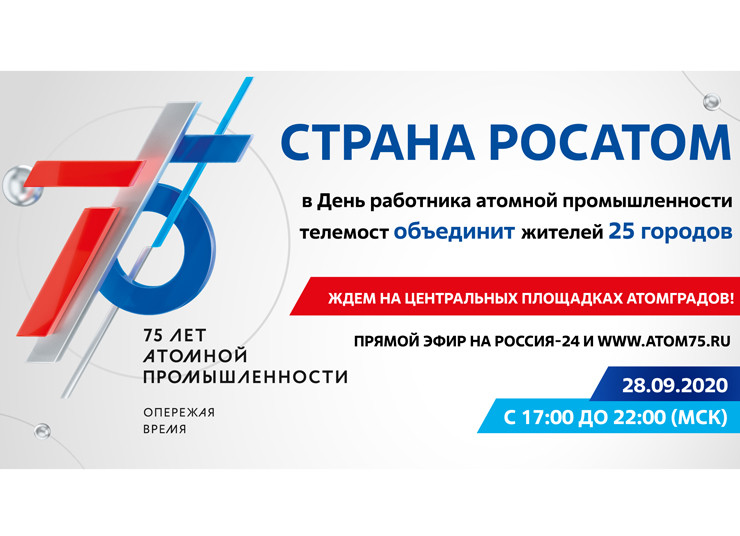 28 сентября, в День работника атомной промышленности, пройдет телемост «Перекличка городов». Прямая трансляция на сайте atom75.ru и телеканале «Россия 24» будет идти одновременно из 25 атомных городов и центральной студии у здания Госкорпорации «Росатом» в Москве. Во время пятичасового эфира жители атомградов, работники предприятий Росатома и первые лица компании будут делиться поздравлениями и планами на будущее.