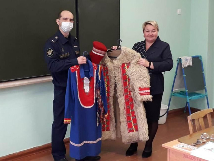 Сотрудники Зеленоборской колонии-поселения №20 подарили краеведческому музею санаторной школы-интерната народный костюм саамов и информационные таблички с символикой Кольского полуострова, которые украсят вход школы.