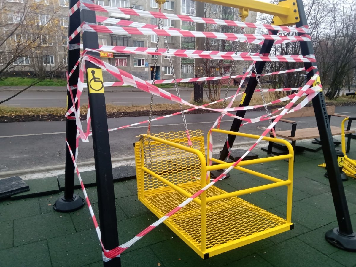 Как пишет пользователь «ВКонтакте» Константин Сергеевич, на качелях отсутствует часть конструкции и поломана опора. Также исчезла штанга. После катания детей качель перевязали оградительной лентой.
