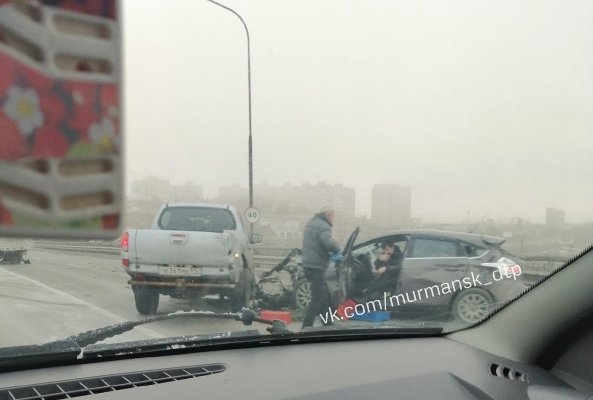 Как сообщает группа ВКонтакте «Мурманск ДТП ЧП», сегодня утром на Кольском мосту произошло ДТП с участием четырех автомобилей. По уточнённым данным из ГИБДД Мурманской области, в ДТП попали три автомобиля: «Митсубиси», «Форд» и «Газель». Водитель «Форда» был госпитализирован в медучреждение. Очевидцы сообщают, что один из автомобилей, попавших в ДТП, был на летней резине. Проводится проверка.
