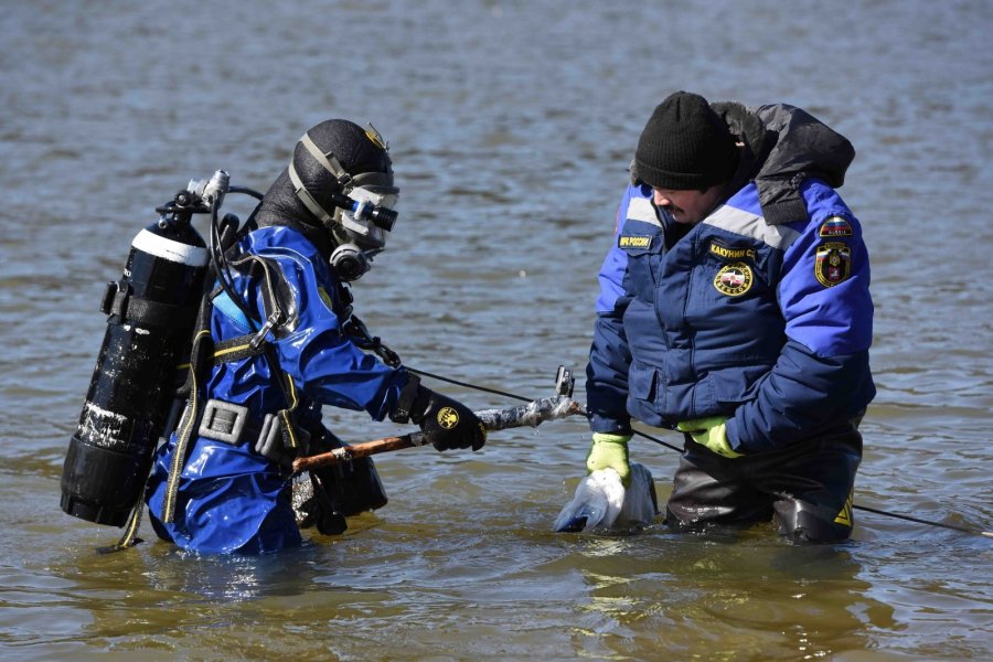 На месте происшествия организована наземная группировка для обследования береговой линии