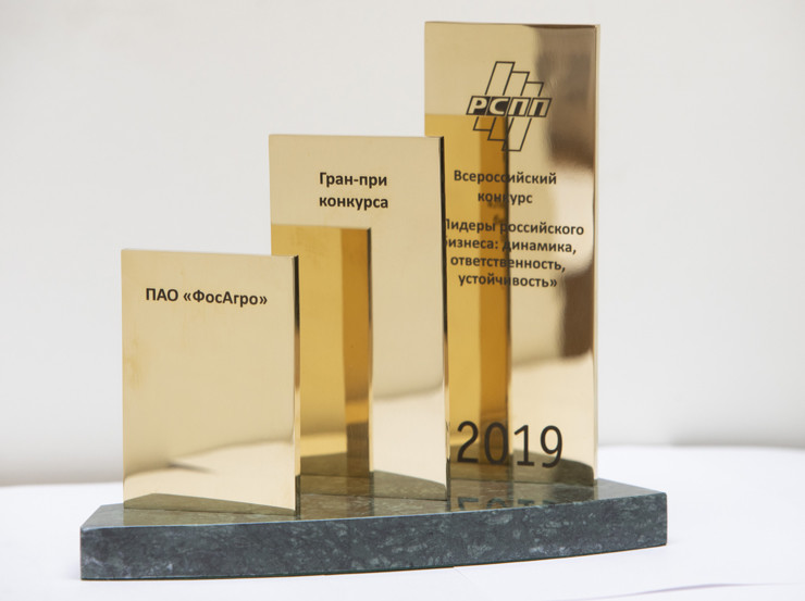 Компания «ФосАгро» стала единственным в истории двукратным обладателем Гран-при Всероссийского конкурса «Лидеры российского бизнеса: динамика, ответственность, устойчивость» Конкурс проводился Российским союзом промышленников и предпринимателей. Итоги были объявлены в ходе Съезда РСПП, завершающего деловую программу Недель Российского бизнеса.