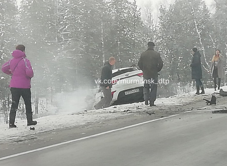 В Мурманской области недалеко от поселка Пушной легковой автомобиль KIA Rio столкнулся с грузовиком Fuso Canter. ДТП произошло на 1348 км 50 метров трассы «Кола».