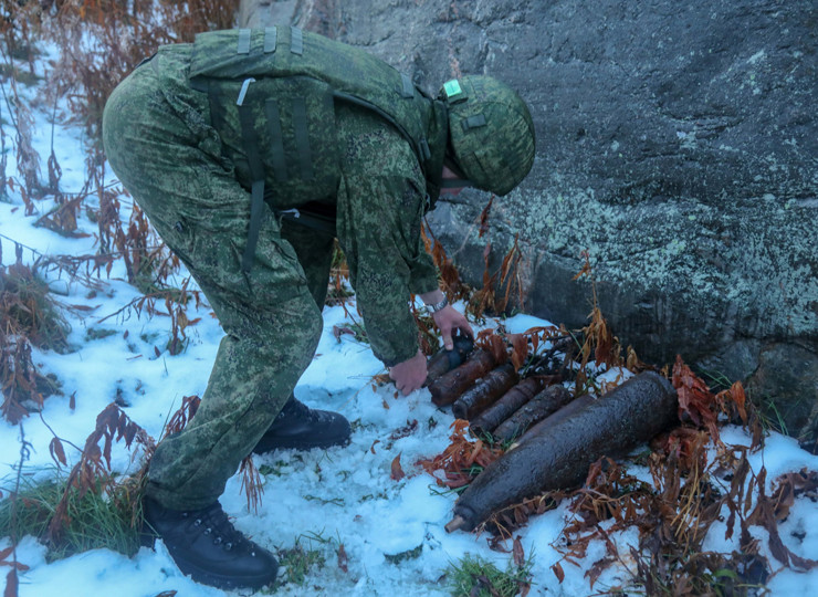Как сообщает пресс-служба Северного флота, они сгруппировали семь артиллерийских осколочных снарядов и один снаряд от немецкого корабельного орудия. После саперы подорвали их с помощью противотанковой мины.