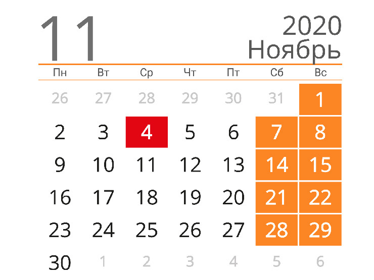Как сообщает РИА Новости со ссылкой на Роструд, среда, 4 ноября, будет выходным днем. Вторник, 3 ноября, будет предпраздничным днем с сокращением продолжительности рабочего дня на один час.