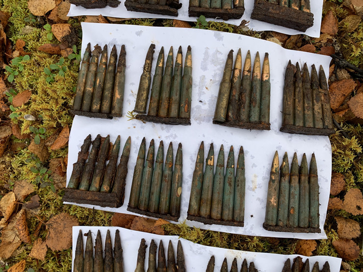 Среди находок были две немецкие осколочно-фугасные ручные гранаты дистанционного действия «М-39», шесть советских противопехотных осколочных ручных гранат дистанционного действия наступательного типа «РГ-32», 315 винтовочных патронов калибром 7,92 мм от винтовки Маузер 98К и 7,62 мм от винтовки Мосина образца 1891/30 годов, а также пять запалов типа УЗРГ и один артиллерийский снаряд калибром 75 мм.