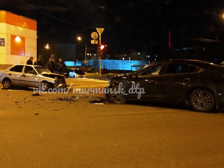 В Мурманске на пересечении улиц Полярные Зори и Книповича произошла очередная авария. Прошлой ночью у «Охоты» столкнулись два легковых автомобиля.