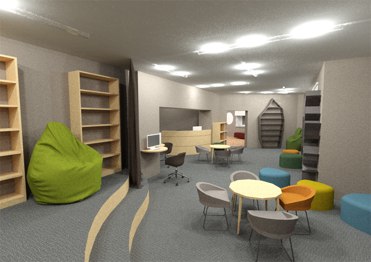 Отмечается, что на базе библиотеки будет создан Центр семейного чтения «Читать вместе!», в котором будут расположены детский зал «Мини-читайка» для мам и малышей, школьно-подростковый зал «Игроландия», пространство для молодежного общения, студия звукозаписи «АртЗС» для детского театра.