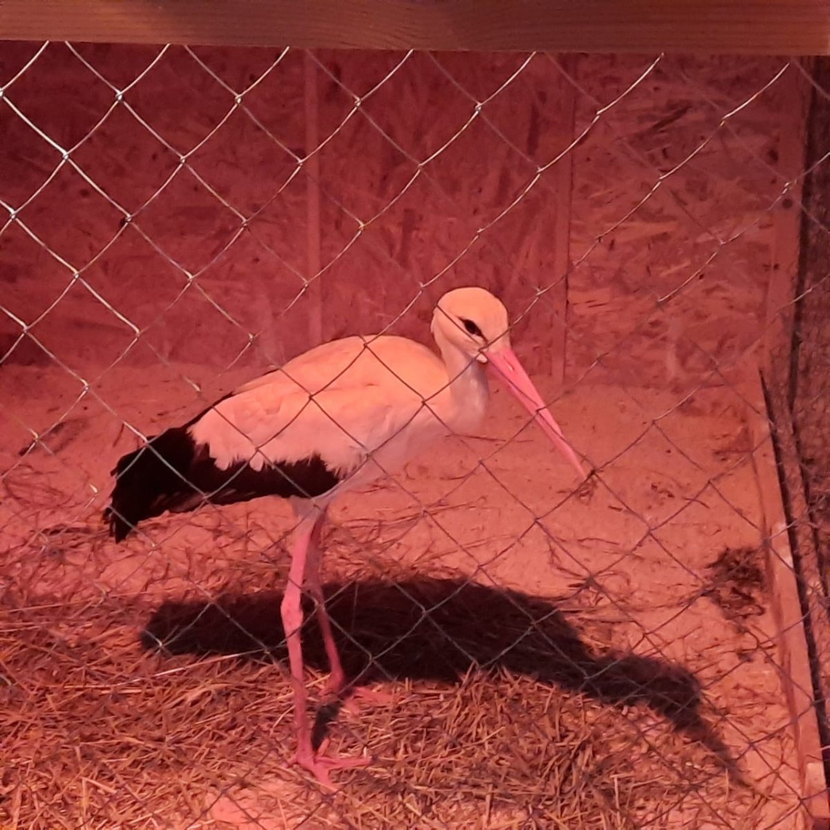Аист ехал из Мурманска в Санкт-Петербург на поезде. Затем его отвезли в центр. Там птицу распаковали из коробки и посадили в отдельный вольер.