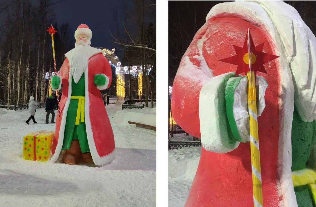 В воскресенье днём в Мончегорске закончили строительство снежных фигур Деда Мороза и Снегурочки. Местные жители оценили фотографии в социальных сетях и пришли лично посмотреть на главные символы Нового года. Некоторые при этом даже пытались забраться наверх.
