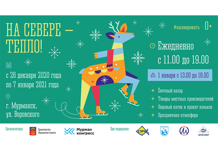 В Мурманске 26 декабря на улице Воровского откроется новогодняя ярмарка «На Севере тепло». В рамках ярмарки будет открыт каток на одной из аллей сквера перед ДК имени Кирова.