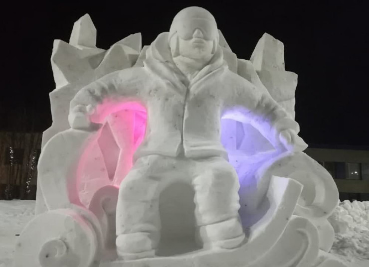 В аэропорту Мурманска появилась снежная фигура сноубордиста. Её создавали четверо творческих северян, рассказал мурманский художник Дмитрий Новицкий.