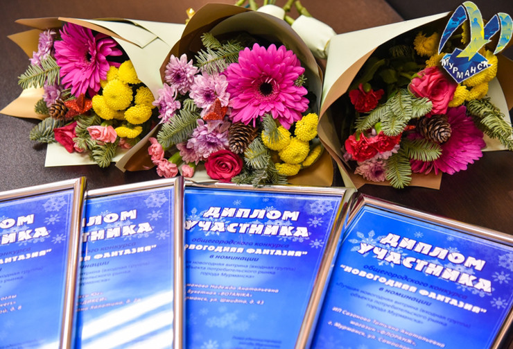 Общегородской конкурс был проведен по номинации «Лучшая новогодняя витрина (входная группа) объекта потребительского рынка города Мурманска». Первое место занял ИП Онегин А. А. магазин «Онегин». На втором месте оказалось ООО «Инжир» кафе «Центральное». Почетное третье место досталось магазину «Флоранж» (ИП Сазонов Ю. Н.).