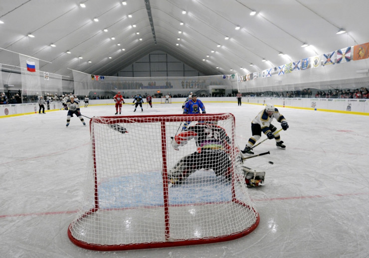 В Североморске первый матч по хоккею с шайбой был проведен на круглогодичной ледовой арене Северного флота. Официальное открытие нового спортивного сооружения в столице моряков-подводников состоялось накануне.