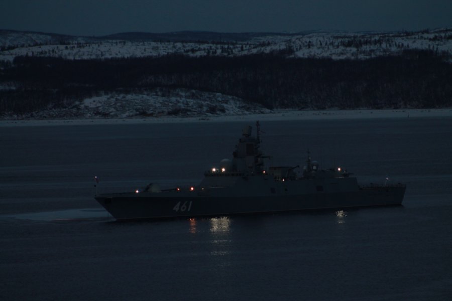 В рамках подготовки экипаж фрегата выполнил в Баренцевом море комплекс учебно-боевых упражнений. К ним относятся несколько стрельб крылатыми ракетами «Калибр».