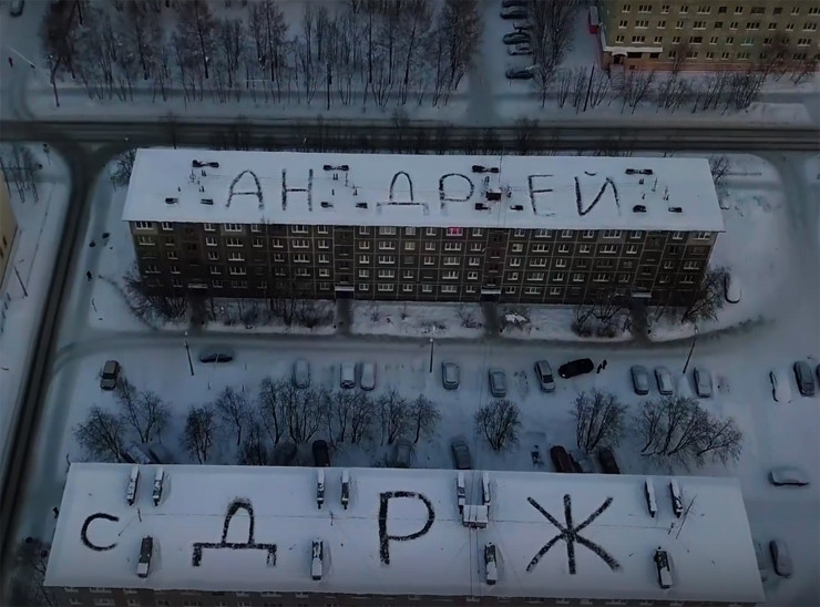 Апатитчане написали на крышах трёх домов «Андрей, с ДРЖ #Апатиты». Видеозапись опубликовали в соцсети «ВКонтакте».