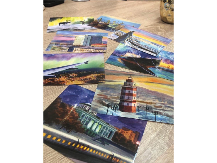 В Мурманске выпустили серию открыток с иллюстрациями художницы из Москвы Варвары Леднёвой. Яркие изображения северных оленей, достопримечательностей города, Кольского залива и северного сияния получили гости Заполярья в период новогодних каникул.