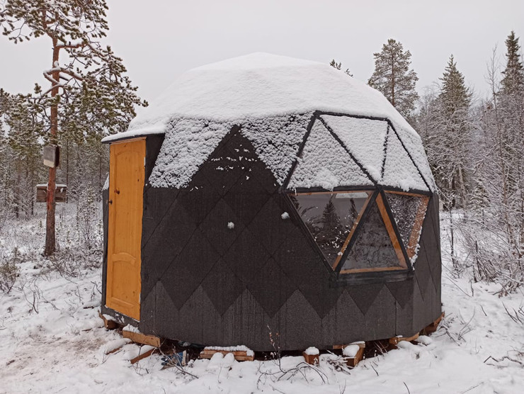 В купольном доме для обогрева спортсменов установлена специальная печь