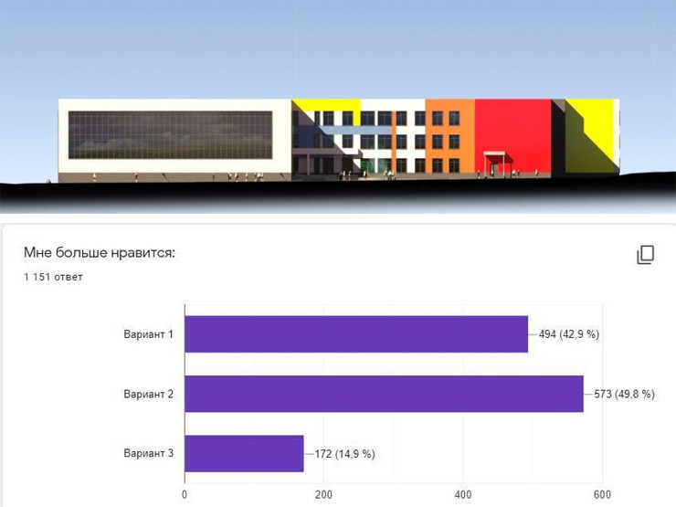 В Мурманске выбрали оформление фасада здания будущей школы на улице Советской. Участие в голосовании приняли 1151 человек.