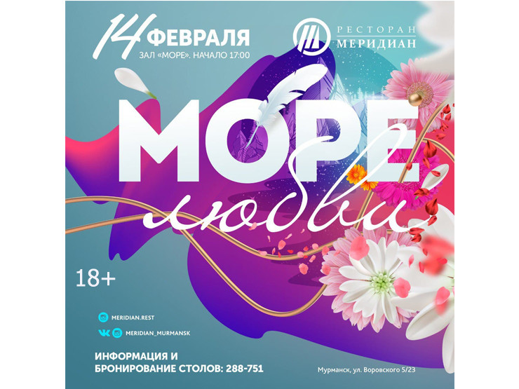 Конгресс-отель «Меридиан» приглашает 14 февраля в 17.00 на музыкально литературный вечер «Море любви» – вечер, где встретятся поэзия, еда и близкие сердца.