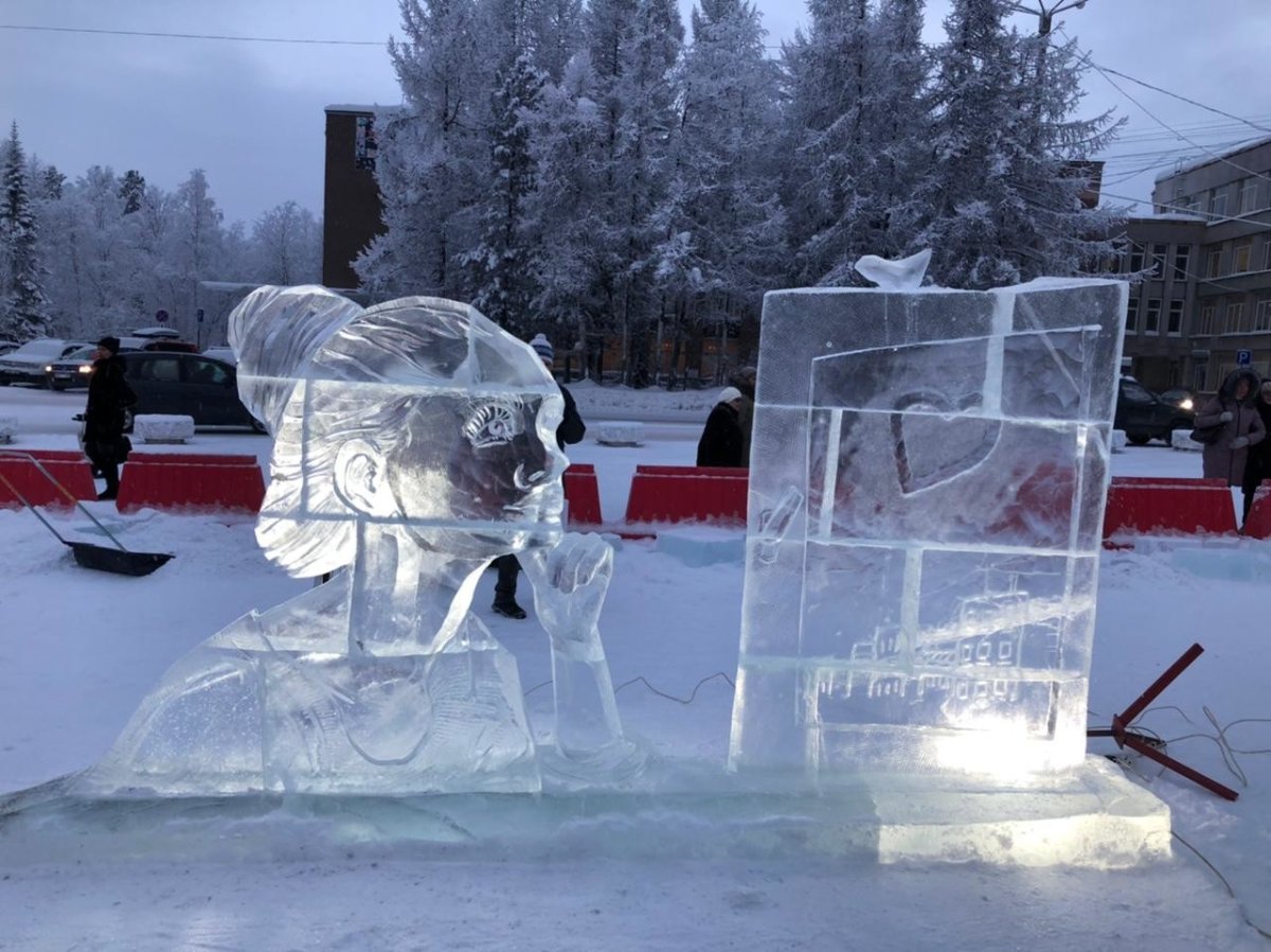 Всего за 90 минут на глазах у публики художники-скульпторы с помощью бензопил и других подручных инструментов вырезали из бесформенных ледяных глыб оригинальные полутораметровые ледовые композиции
