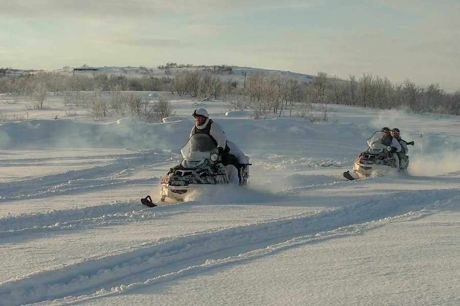 Военнослужащие разведывательных подразделений бригады морской пехоты Северного флота провели учения на военном полигоне в Печенгском районе. В ходе отработки тактики борьбы с незаконными вооружёнными формированиями разведчики выполнили огневой налёт на снегоходах на базу условных террористов. Военнослужащие имели штатное вооружение, средства маскировки и технику.