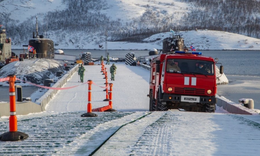 На базе Видяевского гарнизона была проведена командно-штабная тренировка по локализации и ликвидации последствий условной чрезвычайной ситуации техногенного характера. По легенде на одной из подлодок якобы произошла внештатная ситуация, из-за которой произошел условный выброс радиоактивных веществ.