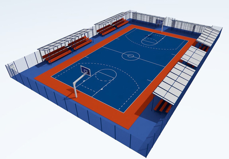 На специально подготовленной площадке будет уложено современное специализированное баскетбольное покрытие, выдерживающее температурные перепады от -50ºС до +50ºС, установлено спортивное оборудование и трибуна для зрителей
