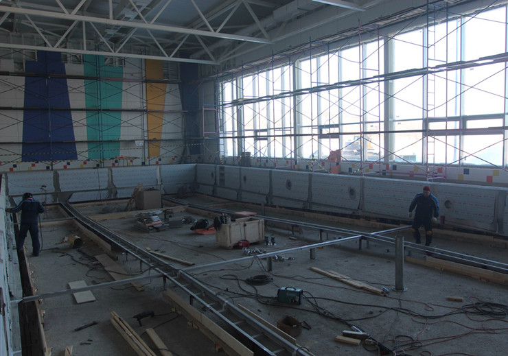 Как сообщает администрация района, уже заканчивается отделка фасада здания, завершаются внутренние работы, начался главный этап строительства - сборка двух чаш: взрослой и детской. По планам, на это может уйти около трех недель.