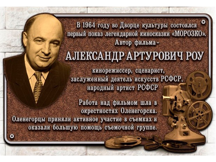 В Оленегорске 13 марта на фасаде Дворца культуры установят памятный знак режиссеру киносказки «Морозко» Александру Роу. Об этом сообщили в министерстве культуры Мурманской области.