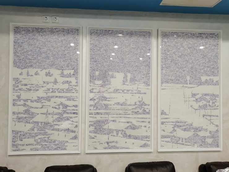 Картина пермского художника заняла почетное место в бизнес-зале аэропорта «Хибины». Издалека кажется, что на ней изображены очертания поселка. Но подойдя поближе, можно рассмотреть, что в качестве художественных мазков использовались оттиски штампов почти 50 аэропортов Пермского края. Сейчас воздушные гавани закрыты, а штампы были найдены в здании бывшего аэропорта «Бахаревка». Штампы в свое время служили отметкой места продажи билета на самолет АН-2.