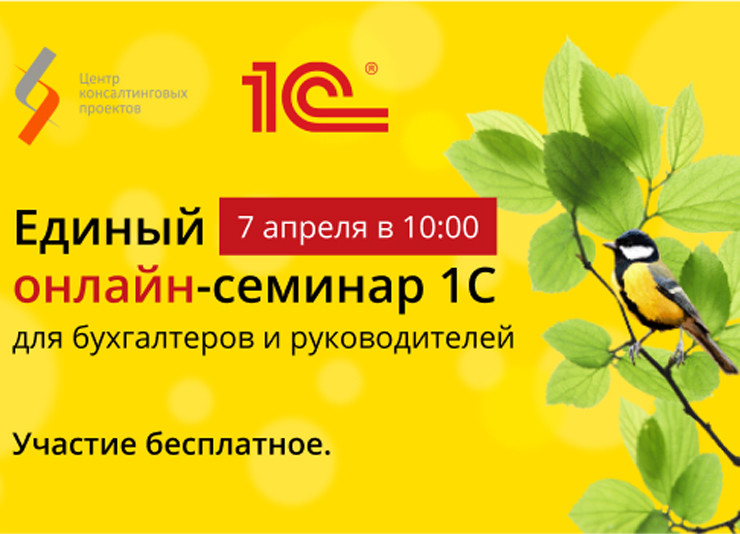 Центр консалтинговых проектов приглашает 7 апреля в 10.00 бухгалтеров и руководителей на Единый онлайн-семинар 1С «Изменения в учете и отчетности. Новые возможности программ 1С».