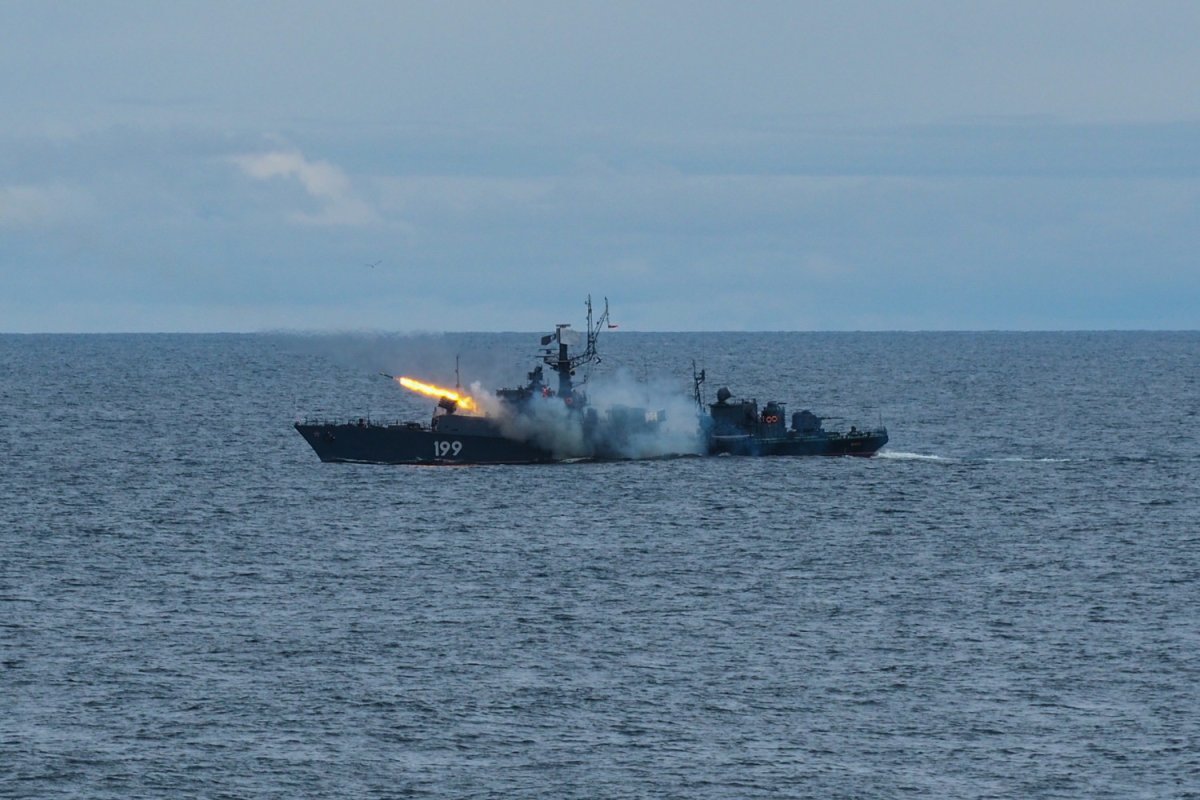 Экипаж малого противолодочного корабля (МПК) «Брест» Кольской флотилии разнородных сил Северного флота выполнил артиллерийские упражнения на полигонах боевой подготовки в Баренцевом море.