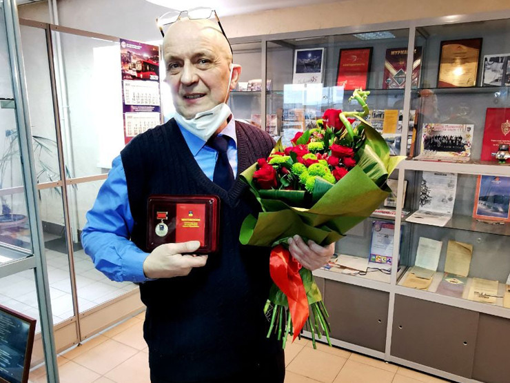 Владимиру Долинину, отработавшему водителем в «Электротранспорте города Мурманска» тридцать три года, почетный знак «За заслуги перед городом Мурманском» вручили глава муниципального образования город Мурманск Андрей Сысоев и депутат Совета депутатов города Мурманска Сергей Коробков.