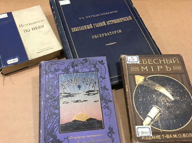 Например, практическое руководство «Путеводитель по небу» было удостоено малой премии императора Петра Великого и от астрономического общества – премии императора Николая II. На экспозиции представлено третье издание этой книги, вышедшее в 1907 году.