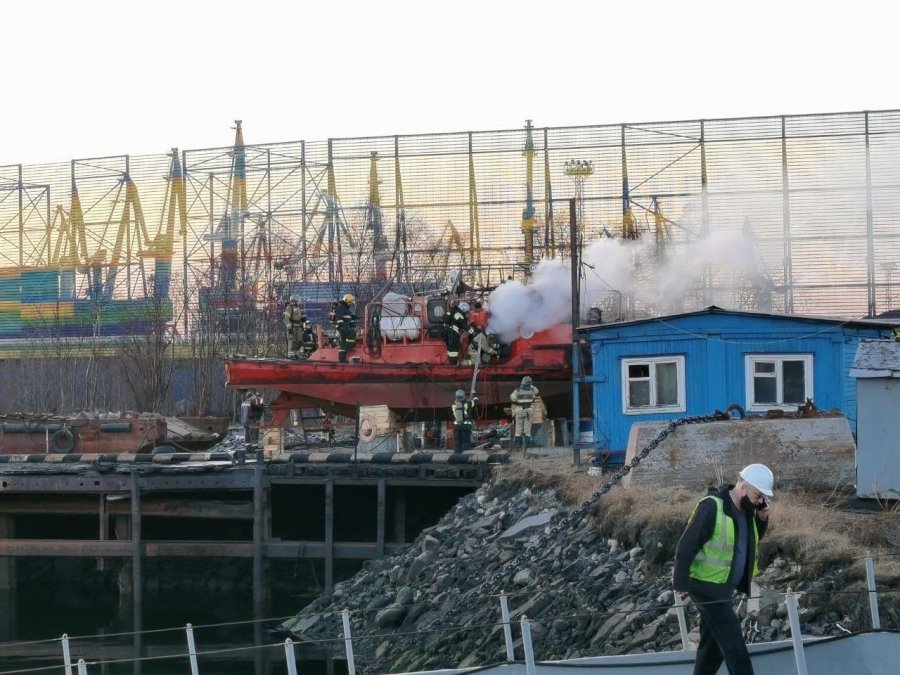 «Возгорание произошло в кубрике на площади три квадратных метра. Судно находится на разделке», - сообщили в ведомстве.