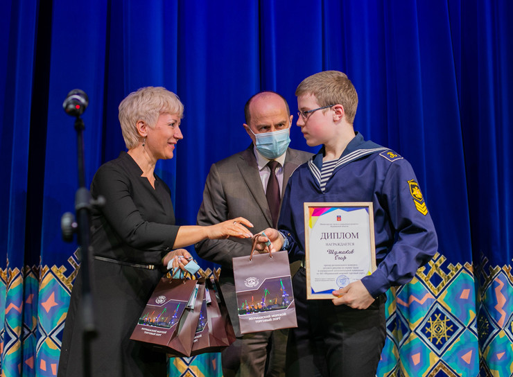 На церемонию награждения в Театр кукол приехали ребята со всех уголков Мурманской области. Однако была среди работ уникальная, которая не попала ни под одну номинацию из-за слишком большого формата. Коллективный рисунок под названием «Корабельные правила. Техника безопасности на судне» был выполнен будущими офицерами, курсантами Нахимовского училища - Егором Шумаковым, Данилом Гнетневым, Кириллом Кучко и Никитой Есиковым. Работа настолько запала в душу портовикам, что было решено выделить ее в дополнительную номинацию, учреждённую АО «Мурманский морской торговый порт».