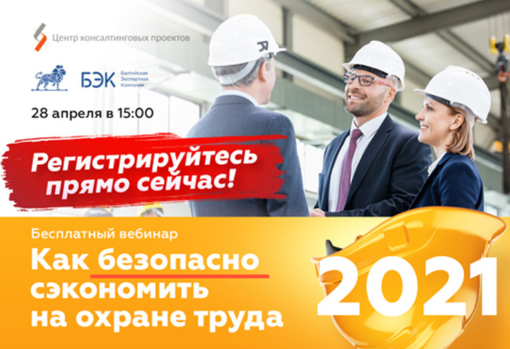 Центр консалтинговых проектов и Балтийская экспертная компания приглашают 28 апреля в 15.00 на бесплатный вебинар «Как безопасно сэкономить на охране труда в 2021 году».
