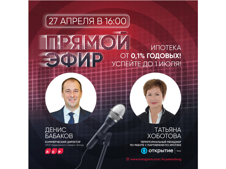 Как разобраться в банковских программах на покупку недвижимости и выбрать наиболее выгодный вариант – этой теме будет посвящена очередная онлайн-встреча в популярном Instagram-канале @sr.petersburg. В прямом эфире выступят Денис Бабаков, коммерческий директор «ЛСР. Недвижимость Северо-Запад», и Татьяна Хоботова, территориальный менеджер по работе с партнерами по ипотеке банка «Открытие».
