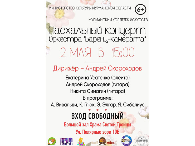В Мурманске 2 мая пройдет пасхальный концерт, посвященный Пасхе. Для мурманчан выступит оркестр «Баренц-камерата». Об этом они сообщили в соцсетях.