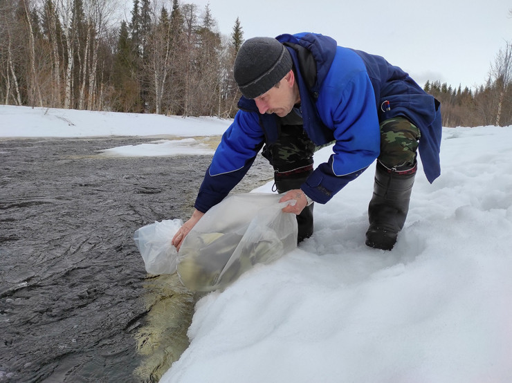 Рыба была выращена на Умбском рыбоводном заводе и доставлена к притоку реки в контейнерах с речной водой