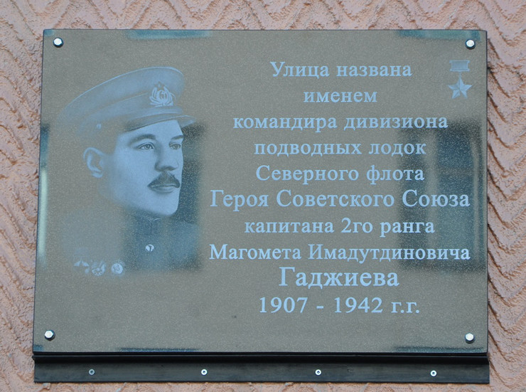В Североморске на фасаде дома №1 на улице, названной в честь прославленного подводника, Героя Советского Союза Магомета Гаджиева, в его честь установлена мемориальная доска.