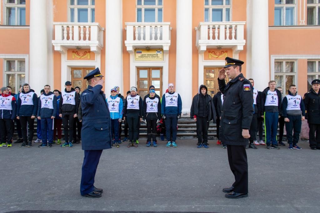 Между собой соревновались матросы и старшины крейсеров «Пётр Великий», «Маршал Устинов», миноносца «Адмирал Ушаков» и БПК «Вице-адмирал Кулаков» и «Североморск». Участие в эстафете также приняли авиаторы смешанного авиаполка, военные инженеры и связисты. Их разделили на девять команд.