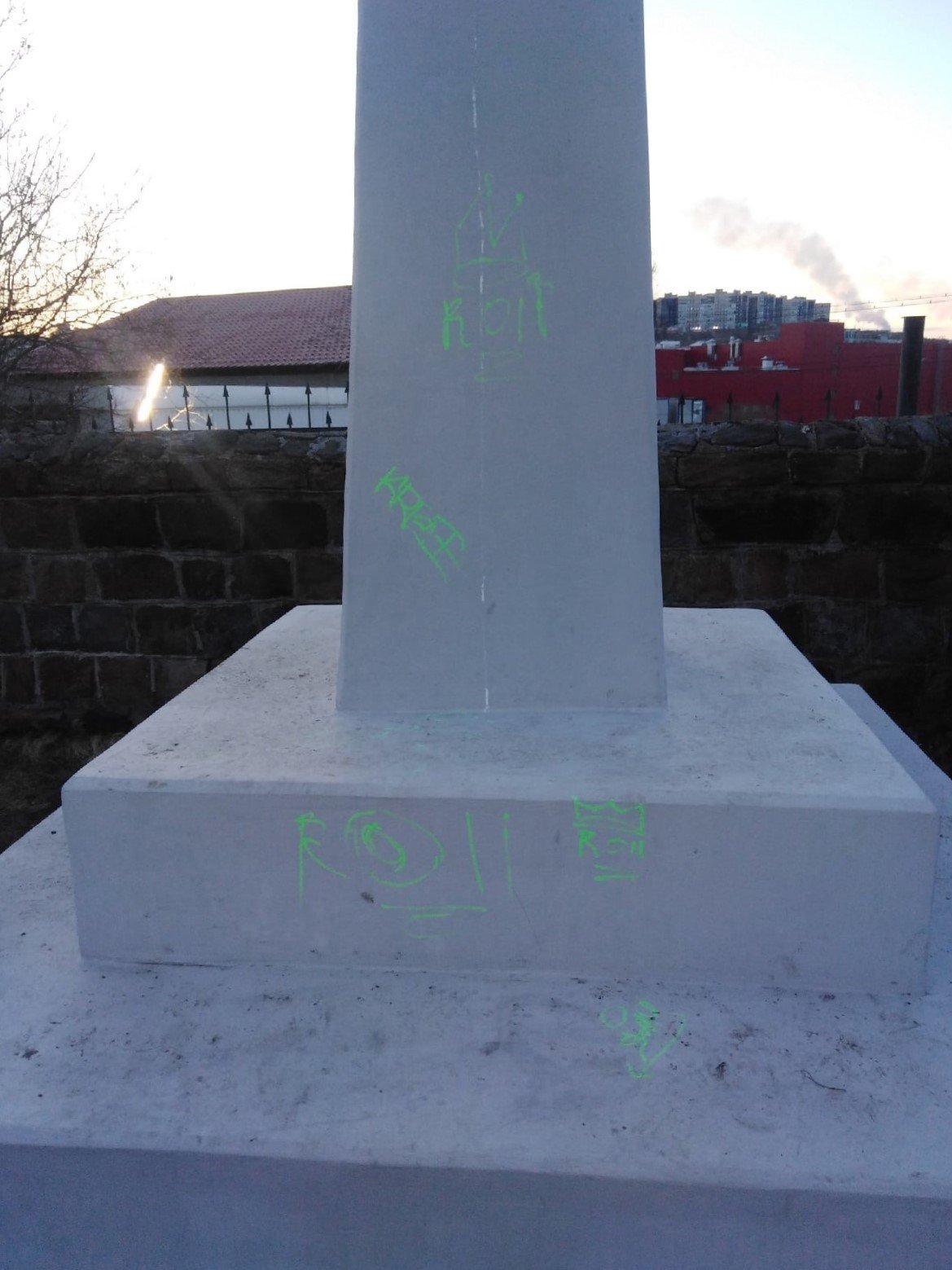 Вандалы изрисовали плиты с именами погибших и «Столетнюю пирамиду», которая считается одним из старейших памятников Мурманска. Они наставили теги зелёной краской.