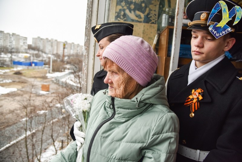 В Мурманске участника Великой Отечественной войны Марию Акимову, которая прошла всю войну, поздравили с наступающим праздником Великой Победы. По окнами её дома с концертом выступили коллектив Дома Культуры «Первомайский» и кадеты из «Кадетской школа города Мурманска».
