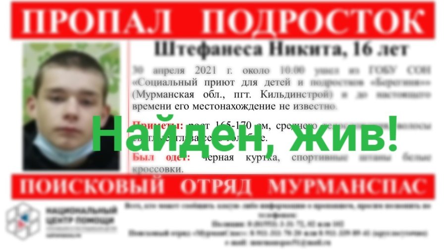 Подросток 16 лет был объявлен в розыск поисковым отрядом «МурманСпас». На своей странице ВКонтакте общественники сообщили, что через неделю поисков он найден живым.