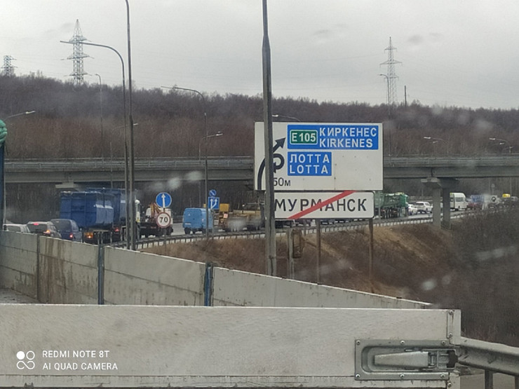 В пятницу утром под Мурманском образовалась большая пробка. Десятки автомобилей встали за Кольским мостом в сторону Лицы.