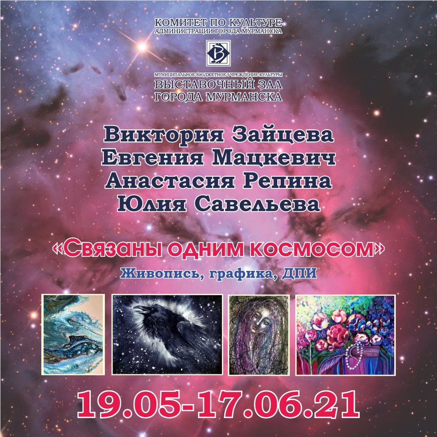 В Выставочном зале Мурманска откроется выставка живописи, графики и декоративно-прикладного искусства четырех художниц под названием «Связаны одним космосом». Она начнет свою работу в 17 часов 19 мая. Специальными гостями на презентации выставки станут этно-музыкант мультинструменталист, участник мурманской этногруппы «АТМА» Виталий Карамов и певица, композитор, вокальный тренер Мария Марус.