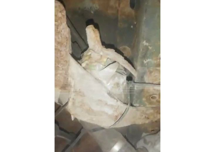 Подняв автомобиль, мурманчанин увидел в районе заднего левого колеса прикреплённую бомбу. Устройство состояло из пластиковой канистры с тротилом и запалом. Оно было прикреплено к машине хомутами.